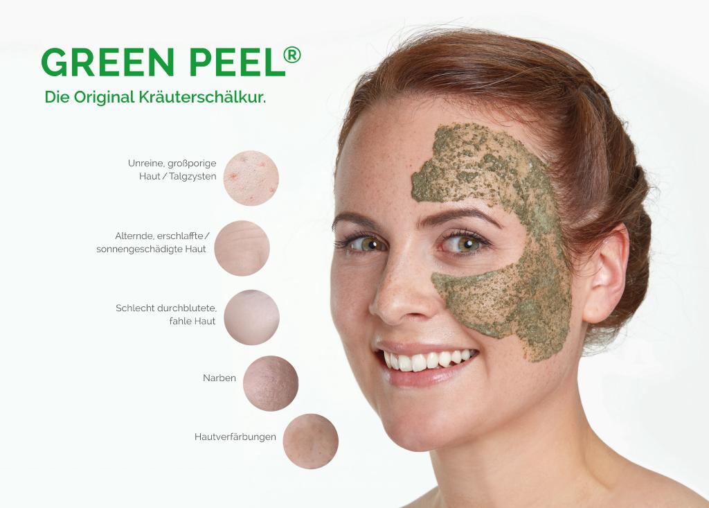 GREEN PEEL® Behandlung Patentierte Spezialpeelingbehandlung nach Dr. Christine Schrammek bei Aknehaut oder atrophischer Haut und Hyperpigmentierung, wie z.B. Altersflecken plus intensiver Pflegeberatung für zu Hause!